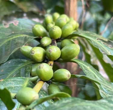 北インド・カリンポンの美しい山あいにある Himali Highland Coffee 農園 では、2025–2026年シーズンの最初のコーヒークロップの収穫に向けた準備が進んでいます。今年の収穫まであとおよそ1か月。枝にはまだ鮮やかな緑色のコーヒーチェリーが実り、ゆっくりと熟していく途中です。